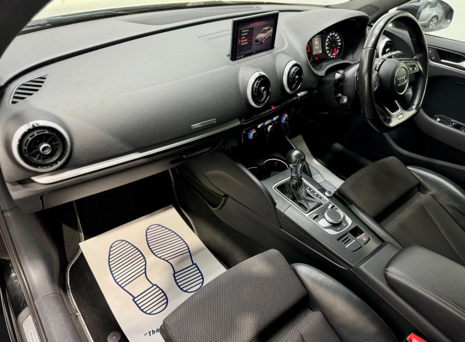 Inlays - Matt Brushed Aluminium, LED Headlights with LED Rear Lights and Dynamic Rear Indicators, LED Interior Light Package, Lashing Points in Luggage Compartment, MMI Navigation - SD Card Based, MMI Radio Plus with 7in Electrically Retractable Colour MMI Screen, Model and Engine Technology Badges at Rear, Non-Smoking Package, Online Media Streaming - Audi MMI Connect App Required, Pedals - Brushed Stainless Steel, Privacy Glass, Rear Parking Sensors, Remote Central Locking with 2 Fold Away Keys, S Line Badges on Front Wings, S Line Design Body Styling, Seat Belt Monitoring, Space Saver Spare Wheel, Split Folding Rear Seat Bench - 60-40 or Fully, Sport Suspension, Steering Wheel - 3-Spoke Leather-Multifunction-Flat Bottomed-Shift Paddles, Storage Compartments in the Door Side Trims-Centre Console-Under Drivers Seat, Storage Package, Tool Kit and Car Jack, Tyre Pressure Warning Light, 18in Alloy Wheels - 10-Spoke Design Matt Titanium Look with Diamond Cut Finish, 2 x USB Charging Ports and 1 x AUX-IN, 6-Airbag System with Knee Airbag for Driver, Aluminium Interior Elements, Anti Theft Locking Wheel Bolts, Anti-Theft Alarm, Audi Connect Infotainment Services - 3 Month Trial, Audi Drive Select, Audi Smartphone Interface, Audi Sound System, Auto-Dimming Rear-View Mirror with Light and Rain Sensor, Black Styling Package, Bluetooth Interface, CD Drive, Chrome-Plated Exhaust Tailpipe Trim, Cloth Headlining in Black, Colour Drivers Information System - DIS, Cruise Control, DAB Digital Radio, Door Mirrors - Black Housing, Door Mirrors - Electrically Adjustable and Heated with Integrated LED Side Indicators, Dual-Zone Electronic Climate Control, ESC - Electronic Stabilisation Control inc ABS - ASR and EDL, Electric Windows - Front, Electromechanical Parking Brake, Electromechanical Power Steering, Email and Text Messages can be Displayed on your Vehicles MMI, First Aid Kit and Warning Triangle, Front Centre Armrest, Front and Rear Floor Mats, Heated Windscreen Washer Jets, Hill Hold Assist, ISOFIX Child Seat Mounting and Top Tether, Illuminated Door Sill Trims with S Logo