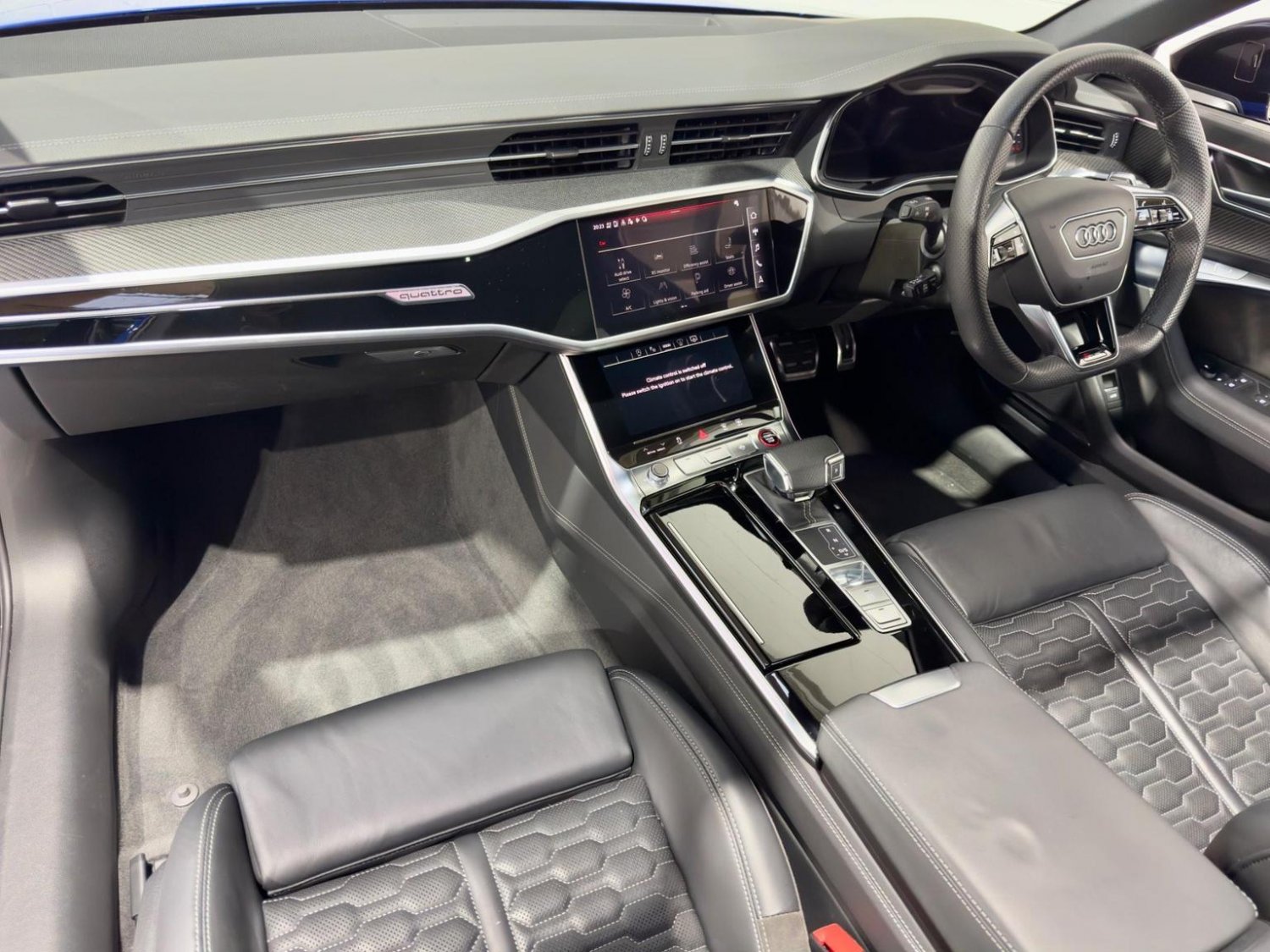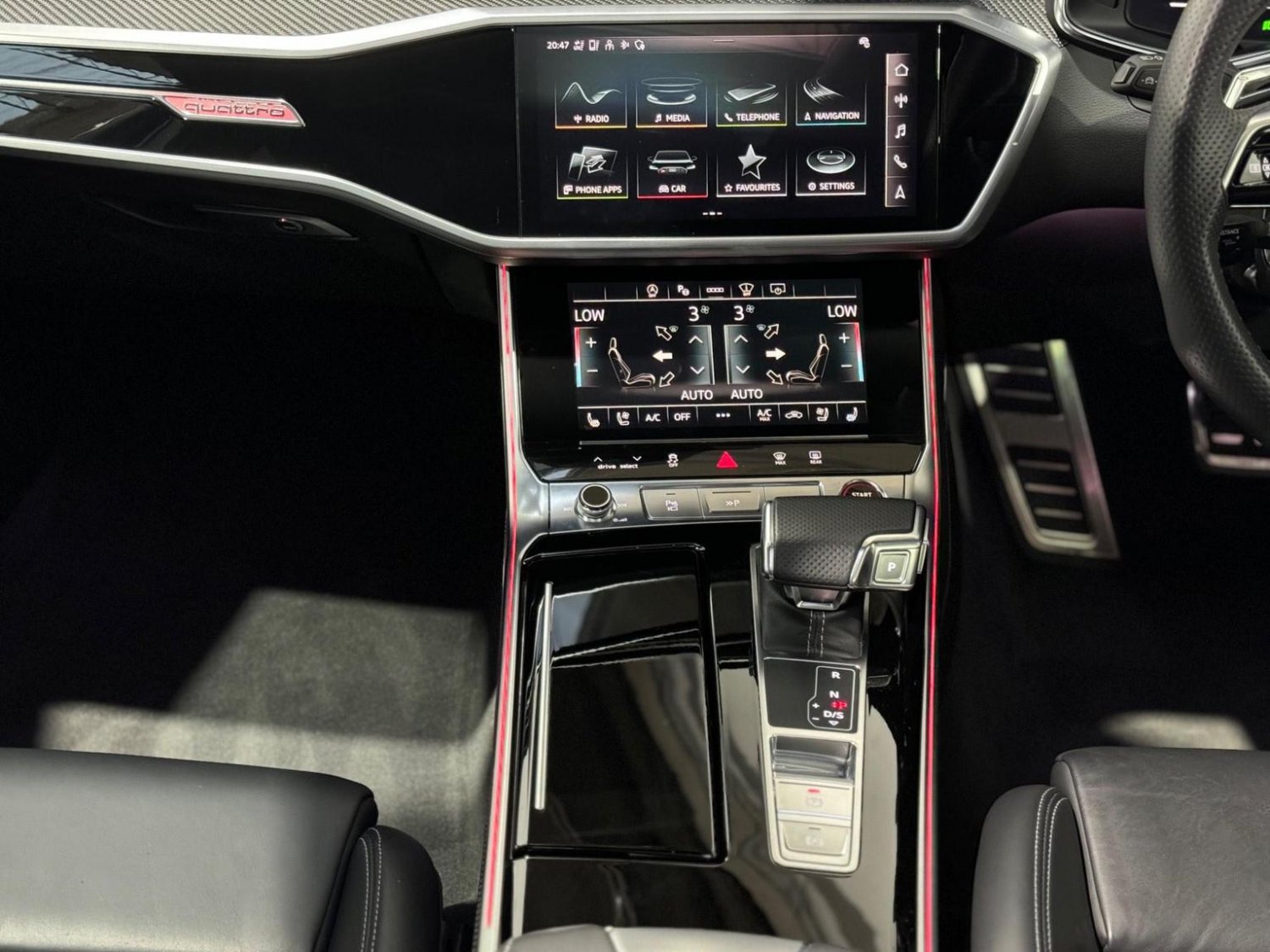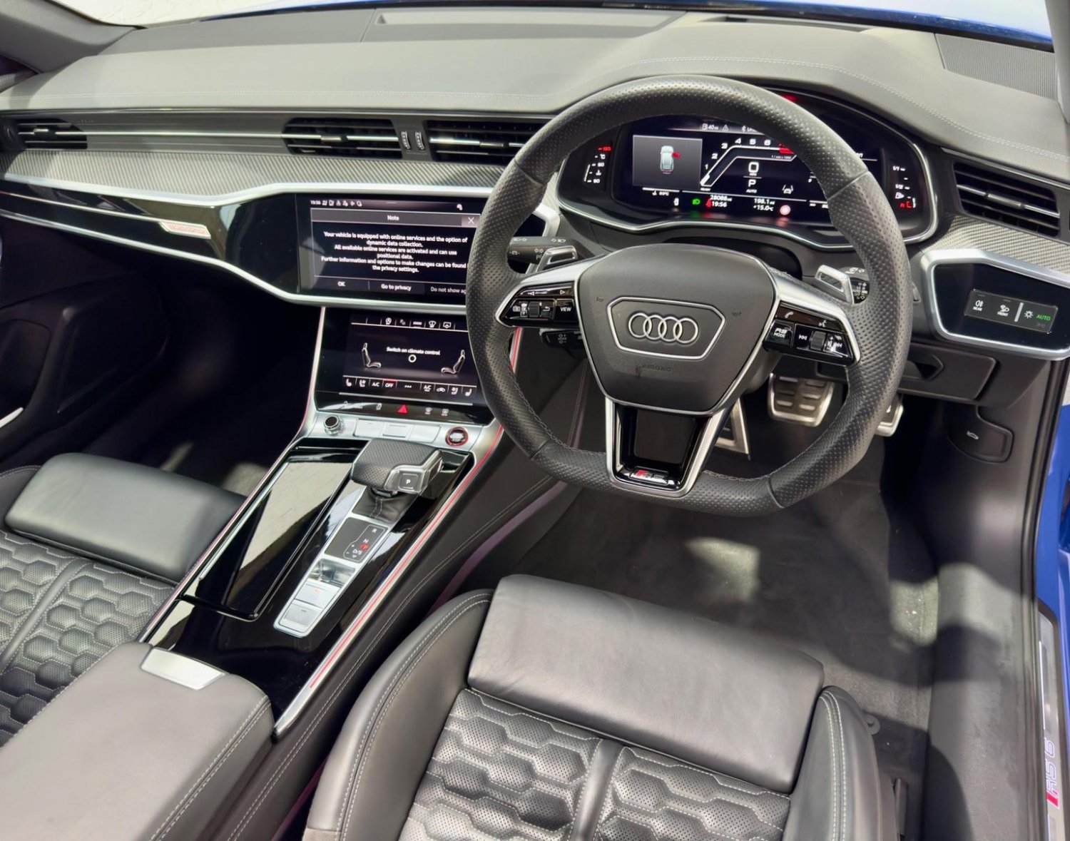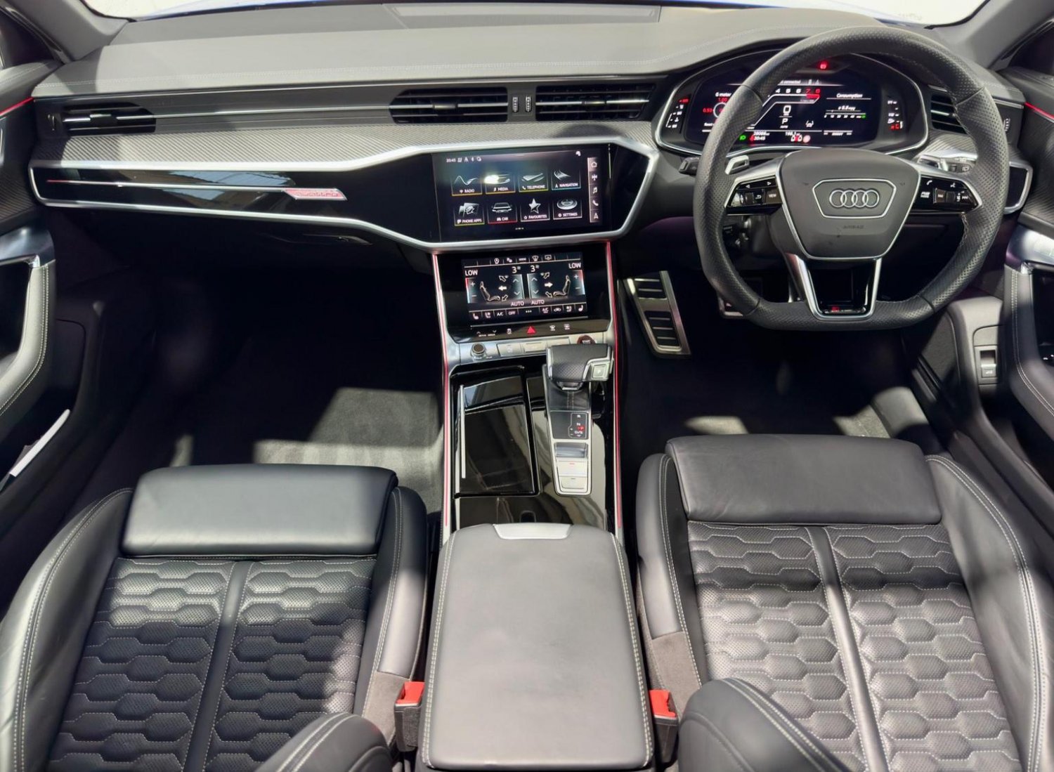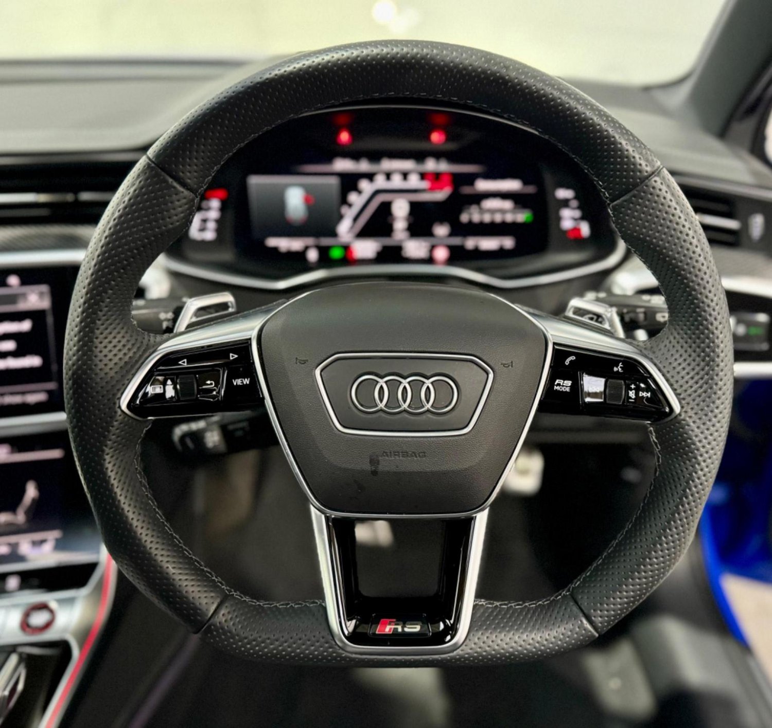 2 USB-C Ports with Charging Functionality in the Rear, 22in Alloy Wheels - Titanium Matt Gloss Turned Finish, AMI - Audi Music Interface, Air Quality Pack, Anti-Theft Alarm with Tow-Away Protection, Audi Connect - 3 Year Subscription, Audi Connect with Amazon Alexa Integration, Audi Drive Select with Efficiency, Audi Pre-Sense Front, Audi Smartphone Interface, Audi Virtual Cockpit with RS Specific Design and 12.3in Display, Auto Dimming and Frameless Rear View Mirror, Bluetooth Interface, Camera Based Traffic Sign Recognition, City Assist Pack, Cloth Headlining in Black, Comfort and Sound Package, DAB Digital Radio, Deluxe 4-Zone Automatic Climate Control, Direct Tyre Pressure Monitoring System, Electric Steering Column Adjustment, Electrically Adjustable Front Seats with Memory Function for Drivers Side, Electromechanical Parking Brake, Extended LED Interior Lighting Package - Multi-Coloured, Extended Pedestrian Protection Measures, Exterior Mirrors -? Electrically Adjustable - Heated - Folding and Automatically-Dimming, First Aid Kit and Warning Triangle, Gloss Black Styling Package, HD Matrix LED Headlamps with Audi Laser Light with Dynamic Light Design and Dynamic Turn Signal, Head-Up Display, Headlight Washers, Heated Front and Rear Seats, Illuminated Door Sill Trims with RS Logo, Inlays - Fine Grain Ash - Natural Grey-Brown, Keyless Go, Lane Departure Warning, MMI Navigation with MMI Touch, Operating Buttons in Gloss Black, Panoramic Glass Sunroof, Pedals and Footrest - Stainless Steel, Power Door Closure, Power Operated Tailgate, Privacy Glass, RS Rear Spoiler in Body Colour, RS Specific Bumpers - Front Bumper Air Inlets on Both Sides, RS Sports Suspension Plus with Dynamic Ride Control - DRC, RS Steel Brakes with Black Calipers, RS-Air Suspension - 4 Corner - with Electronic Shock Absorption Control - Sports Version, Seat Ventilation for Front Seats, Top Speed Restriction Increase to 174mph, Tour Pack, Towbar Preparation, Voice Control System, Wheel Arch Extensions - Front and Rear, quattro with Sports Differential, Aluminium Roof Rails, Audi Drive Select, Audi Music Interface in the Rear, Audi Phone Box with Wireless Charging, Cruise Control System with Speed Limiter, Door Mirrors - Electrically Folding - Adjustable and Heated with Integrated LED Side Indicators and Kerb-view Function for Passenger Side, Rear-View Camera, Window Trims in Matt Aluminium