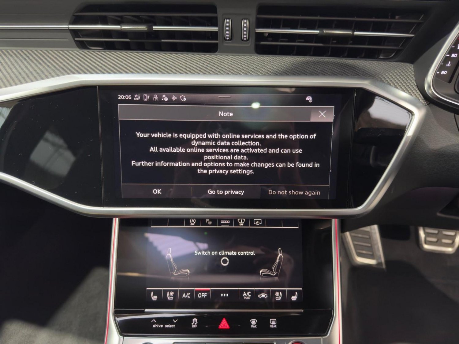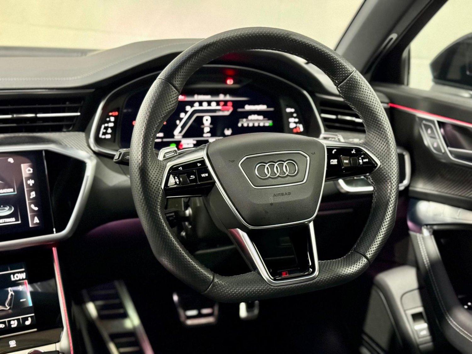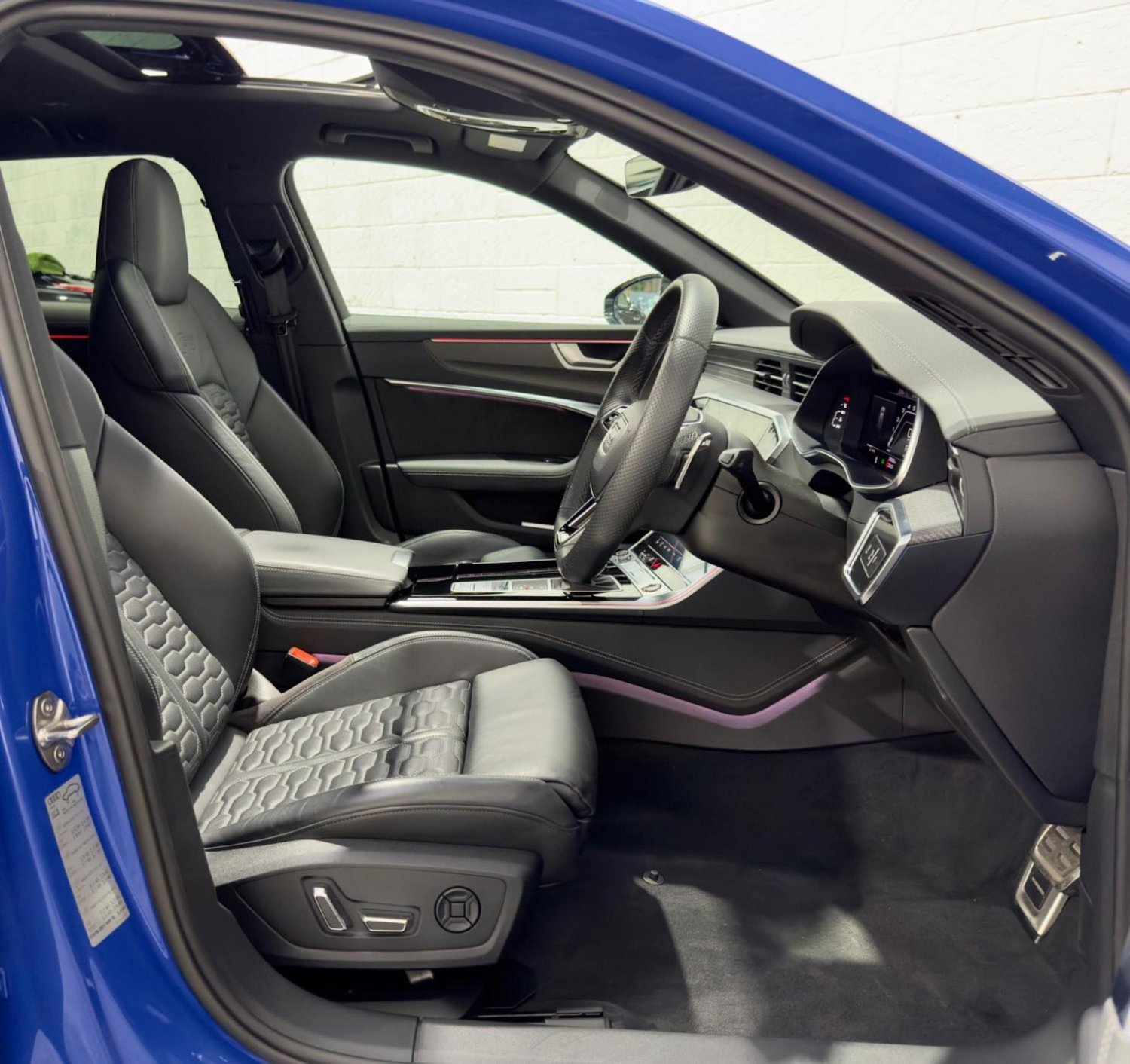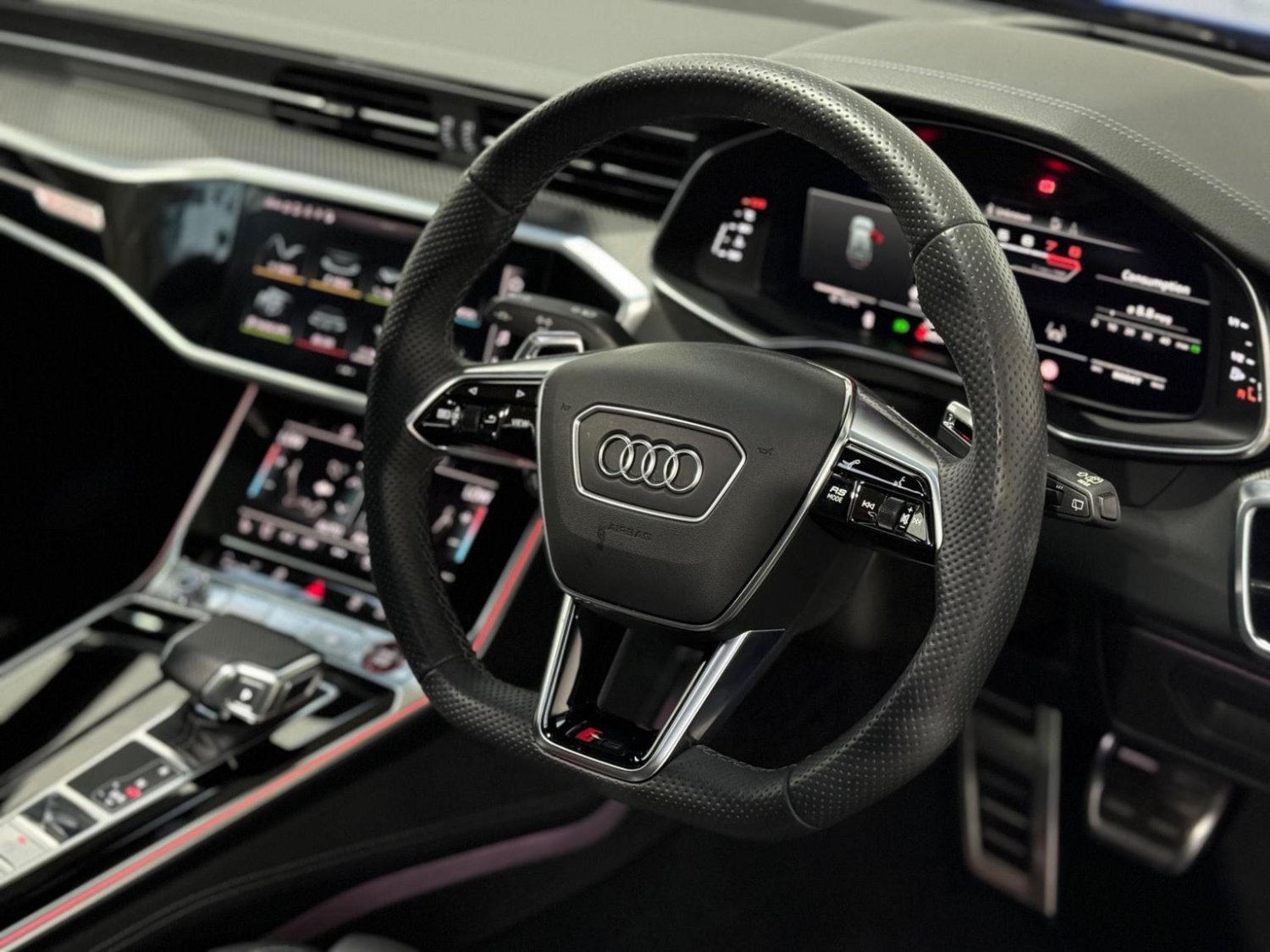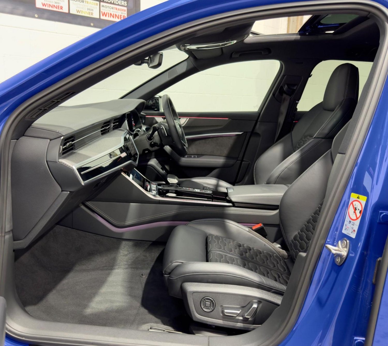 2 USB-C Ports with Charging Functionality in the Rear, 22in Alloy Wheels - Titanium Matt Gloss Turned Finish, AMI - Audi Music Interface, Air Quality Pack, Anti-Theft Alarm with Tow-Away Protection, Audi Connect - 3 Year Subscription, Audi Connect with Amazon Alexa Integration, Audi Drive Select with Efficiency, Audi Pre-Sense Front, Audi Smartphone Interface, Audi Virtual Cockpit with RS Specific Design and 12.3in Display, Auto Dimming and Frameless Rear View Mirror, Bluetooth Interface, Camera Based Traffic Sign Recognition, City Assist Pack, Cloth Headlining in Black, Comfort and Sound Package, DAB Digital Radio, Deluxe 4-Zone Automatic Climate Control, Direct Tyre Pressure Monitoring System, Electric Steering Column Adjustment, Electrically Adjustable Front Seats with Memory Function for Drivers Side, Electromechanical Parking Brake, Extended LED Interior Lighting Package - Multi-Coloured, Extended Pedestrian Protection Measures, Exterior Mirrors -? Electrically Adjustable - Heated - Folding and Automatically-Dimming, First Aid Kit and Warning Triangle, Gloss Black Styling Package, HD Matrix LED Headlamps with Audi Laser Light with Dynamic Light Design and Dynamic Turn Signal, Head-Up Display, Headlight Washers, Heated Front and Rear Seats, Illuminated Door Sill Trims with RS Logo, Inlays - Fine Grain Ash - Natural Grey-Brown, Keyless Go, Lane Departure Warning, MMI Navigation with MMI Touch, Operating Buttons in Gloss Black, Panoramic Glass Sunroof, Pedals and Footrest - Stainless Steel, Power Door Closure, Power Operated Tailgate, Privacy Glass, RS Rear Spoiler in Body Colour, RS Specific Bumpers - Front Bumper Air Inlets on Both Sides, RS Sports Suspension Plus with Dynamic Ride Control - DRC, RS Steel Brakes with Black Calipers, RS-Air Suspension - 4 Corner - with Electronic Shock Absorption Control - Sports Version, Seat Ventilation for Front Seats, Top Speed Restriction Increase to 174mph, Tour Pack, Towbar Preparation, Voice Control System, Wheel Arch Extensions - Front and Rear, quattro with Sports Differential, Aluminium Roof Rails, Audi Drive Select, Audi Music Interface in the Rear, Audi Phone Box with Wireless Charging, Cruise Control System with Speed Limiter, Door Mirrors - Electrically Folding - Adjustable and Heated with Integrated LED Side Indicators and Kerb-view Function for Passenger Side, Rear-View Camera, Window Trims in Matt Aluminium